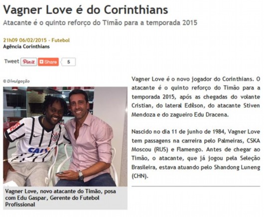 自从本周与山东鲁能队解除合约成为自由球员后,巴西前锋洛维的经纪人正在为他寻找下家。最终,北京时间2月7日,巴甲豪门科林蒂安在其官方网站上正式宣布,洛维将以自由身加盟球队,双方将签署一份为期18个月的合同。