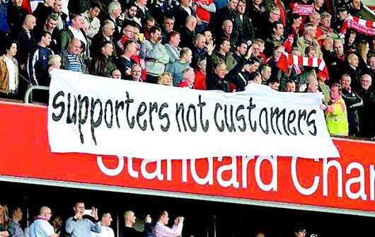 利物浦主场安菲尔德看台打出内涵标语:是支持者不是消费者。(新华社发)
