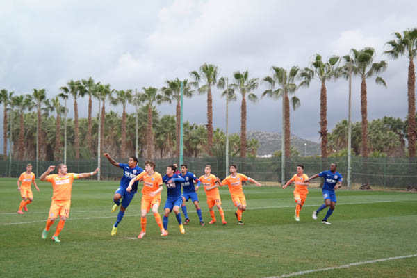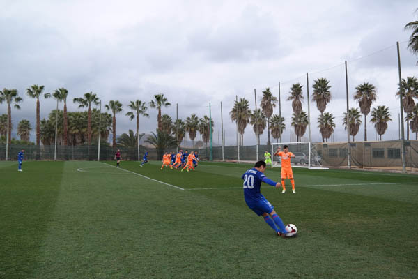 主教练吉洛对于本场比赛的首发做了一些调整,耿晓峰出任门将,苏祖和熊飞搭档中卫,姜坤首发和恩里克出任双前锋。开场3分钟,王赟就在禁区外尝试远射,皮球稍稍偏出左侧门柱。随后双方陷入僵持,虽然只是U21的球员,但是对手的反击速度和身体对抗还是有些出乎申花球员的意料。第14分钟,申花右路配合失误被对手断球后形成快速反击,耿晓峰奋力化解对手禁区内近在咫尺的射门。第18分钟,申花也获得绝佳得分良机,王赟中路直塞,恩里克快速切入禁区小角度射门被门将用手臂蹭了一下飞向球门,然而皮球却鬼使神差地撞到了横梁上弹出。