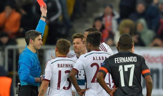北京时间2月18日凌晨,2014-15赛季欧冠1/8决赛首回合的一场较量,比赛最后半小时以10人应战夺冠大热拜仁慕尼黑客场0-0被顿涅茨克矿工逼平,晋级形势有所严峻。第65分钟,第100次出战欧冠的阿隆索两黄变一红,让拜仁场上人数处于劣势,导致得势不得分,不得不无奈接受一个平局。