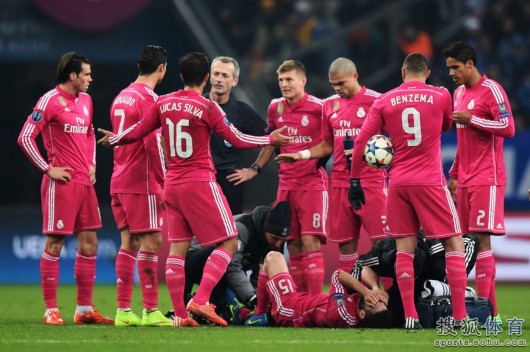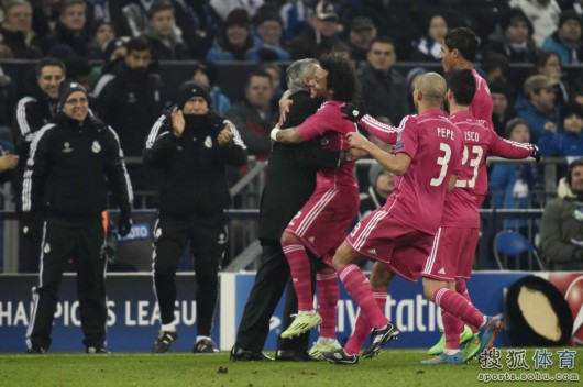 北京时间2月19日凌晨3点45分,2014-2015赛季欧洲足球冠军联赛一场焦点之战在费尔廷斯竞技球场打响,卫冕冠军皇家马德里客场挑战德甲劲 旅沙尔克04。C罗传射建功,马塞洛打进1球,沙尔克04队员普拉特击中横梁,亨特拉尔受伤下场,最终皇马2-0击败沙尔克04。
