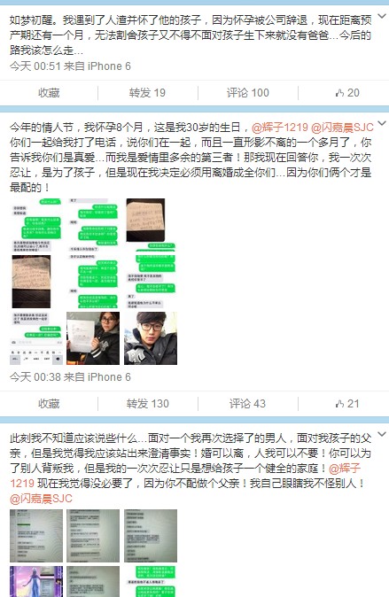 “今年的情人节,我怀孕8个月,这是我30岁的生日,杜文辉、闪嘉晨你们一起给我打了电话,说你们在一起,而且一直形影不离的一个多月了,你告诉我你们是 真爱…而我是爱情里多余的第三者!那我现在回答你,我一次次忍让,是为了孩子,但是现在我决定必须用离婚成全你们…因为你们俩个才是最配的!”