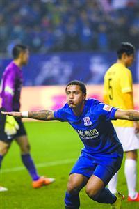 申花外援恩里克上演帽子戏法。 邵剑平 摄