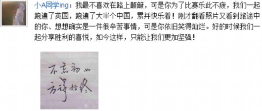 丁俊晖与女友Apple相恋,去年两人领证。在丁俊晖止步首轮后,,爱妻Apple就发微博力挺丁俊晖。“我最不喜欢在路上颠簸,可是你为了比赛乐此不疲,我们一起跑遍了英国,跑遍了大半个中国,累并快乐着!刚才翻看照片又看到旅途中的你、想想确实是一件很辛苦事情,可是你依旧笑得灿烂。好的时候我们一起分享胜利的喜悦,如今这样,只能让我们更加坚强!”