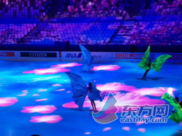 3月20日20时,2015国际滑联世界花样滑冰锦标赛开幕式在东方体育中心“海上王冠”体育馆进行首次带妆彩排。赛事形象大使、冬奥会双人滑冠军申雪、赵宏博夫妇参与合练,重温冰上奇缘,并献唱一曲《飞得更高》。上海市副市长、组委会执行主任赵雯观看彩排,检查开幕式准备情况。