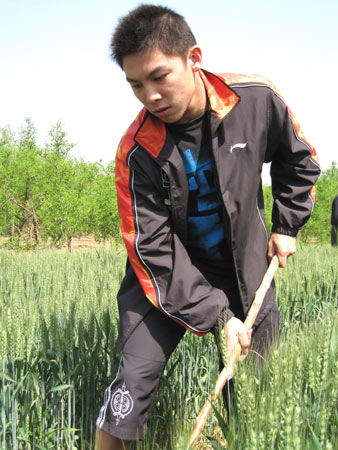 雅典奥运会乒乓球男双冠军成员陈玘,由于在一次比赛结束后不冷静地摔拍子,受到了国家乒乓球队的严惩。2006年5月11日,陈玘独自一人来到河北正定县一个小村子,度过了近一周的农家生活。这期间,他在麦田里卖力地将草连根清除。在39度的高温下,真切的体验了一回农村人的生活。据村支书介绍,“刚开始陈玘确实什么活也不会干,但这孩子聪明又肯吃苦,很快便学会了很多东西和技能。”