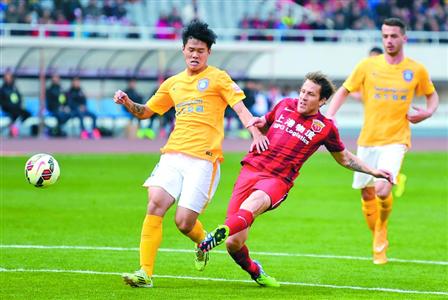 图片说明:海森(红)如果能一直保持如此高的进球效率,那对于本赛季志在亚冠的上港来说,绝对是个好消息。