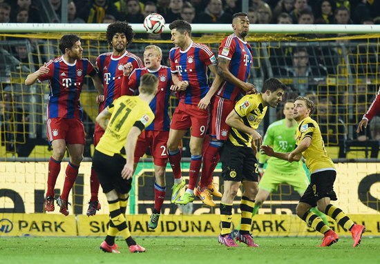 东方网4月5日消息:北京时间4月5日凌晨0:30,2014-2015赛季德甲第27轮继续进行,在西格纳伊度纳球场,领头羊拜仁慕尼黑客场对阵多特蒙德。在这场万众瞩目的“国家德比”中,上半场,面对旧主,莱万多夫斯基头球破门,拜仁1-0暂时领先。下半场,诺伊尔神奇扑出罗伊斯的任意球。最终,拜仁客场1-0小胜多特。这意味着拜仁自2009-2010赛季之后首次单赛季双杀多特。27战过后积67分,保持对狼堡10分的优势继续领跑德甲。