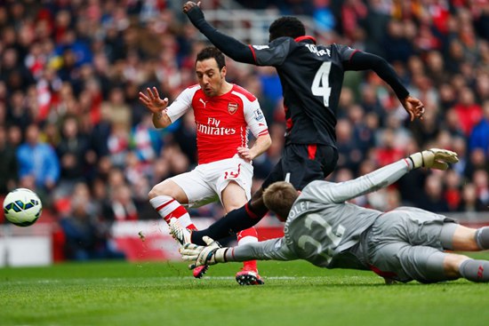 东方网4月5日消息:北京时间4月4日晚上19:45,2014-15赛季英超第31轮一场焦点战中,阿森纳主场出战利物浦。贝莱林突破进球,厄齐尔任意球直接破门,桑切斯和吉鲁分别建功,亨德森主罚点球追回一分,埃姆雷-詹得红牌被罚下,阿森纳4-1击败利物浦,积分榜上暂时超越曼城排到第二名。