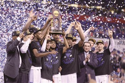 今年的NCAA决赛放在了印第安纳波利斯的卢卡斯石油体育场,7万多球迷涌进了现场。为了给NCAA决赛让路,NBA昨天只安排了篮网和开拓者的比赛。杜克大学在NCAA决赛中以68:63逆转战胜威斯康辛大学夺冠,拿到队史上第5次NCAA冠军,他们的主帅沙舍夫斯基的个人荣誉簿上又多了一个冠军头衔,他的NCAA夺冠次数仅次于UCLA的传奇主帅约翰·伍登。赛后老K教练说,“这种感觉就像在天堂当中。”