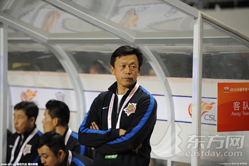 图片说明:2015年4月11日,石家庄永昌2-1上海申鑫。上海申鑫主帅郭光琪(东方IC严禁转载)