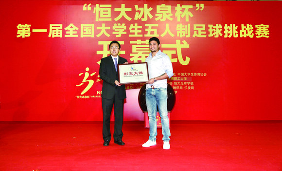 2015年5月23日,第一届“恒大冰泉杯”全国大学生五人制足球挑战赛开幕式在华南理工大学举行。共青团中央书记处书记傅振邦、恒大矿泉水集团董事长刘永灼等相关领导以及恒大淘宝足球俱乐部球星埃尔克森和来自全国近100家主流媒体出席开幕式。