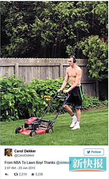 昨日,德克尔的妈妈在网络发布了一张照片——德克尔在修剪草坪。还附有文字:“从NBA到草坪男孩!谢谢@德克尔!”