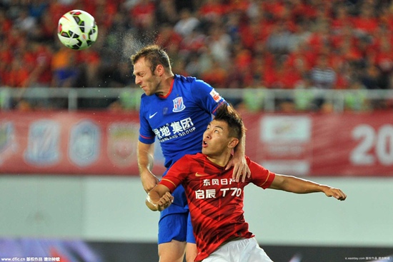 恒大2-2申花仍然领跑 埃尔克森高拉特双响炮