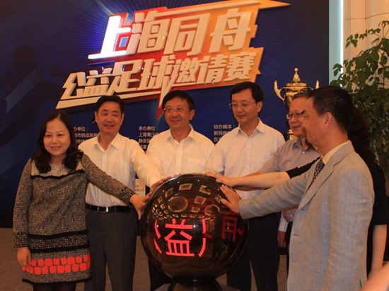 东方网记者成昭远报道:24日下午,首届“上海同舟公益足球邀请赛”在上海报业集团大厦举行。上海市委统战部副部长严军、民革市委副主委李栋樑等出席。奥运冠军陶璐娜以及两位著名足球运动员张玉宁、孙吉也作为嘉宾出现在现场。