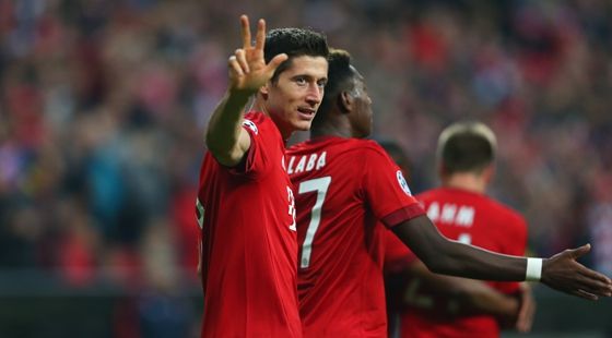 凌晨2:45,欧冠小组赛第二轮,拜仁主场5-0大胜萨格勒布迪纳摩,终结了克罗地亚球队45场不败纪录,本赛季开赛至今德甲巨人保持全胜。第13分钟,科斯塔打近角得手;第21分钟,莱万建功;第25分钟,格策破门;第28分钟,莱万抢点得手;第55分钟,莱万挑射命中。
