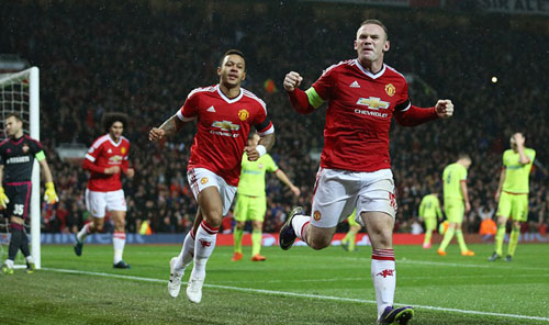 比赛是在雨中进行。第3分钟,罗霍左路传中,马夏尔一停,鲁尼得球顺势左脚射门稍偏出右立柱。第6分钟,阿金费耶夫禁区内又险险解围,避免鲁尼禁区内完成抢射。第9分钟,鲁尼中路直塞妙传,阿金费耶夫从林加德脚下将球封出,随即林加德接布林德直塞大禁区边缘劲射既高又偏。第15分钟,布林德半场突然送出精准长传球,马塔前插勉强垫射,皮球被阿金费耶夫没收。2分钟后,罗霍左肋似传似射大力一抽偏出远角。
