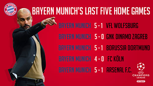 5-1,拜仁用一个近来习以为常的大比分,在主场将阿森纳踢得毫无还手之力。瓜迪奥拉用的还是控制球战术,人员安排还是那一套,但却取得了两周之前在伦敦截然不同的结果。
