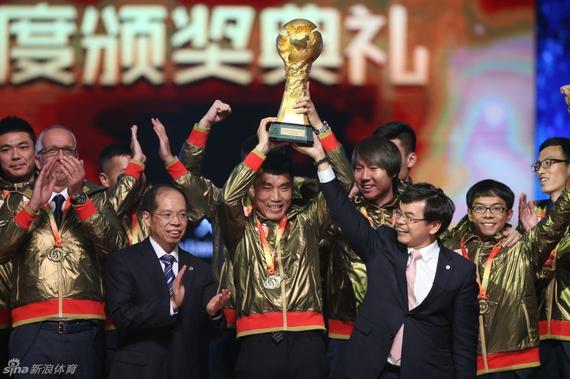 图片说明:恒大2014年捧杯(资料图)