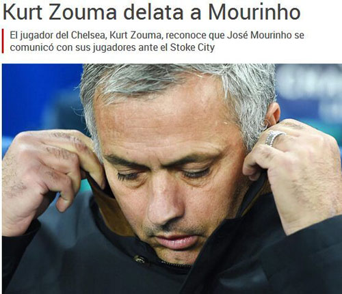英超联赛第12轮,切尔西0-1负于斯托克城,由于此前遭到英足总禁赛,切尔西主帅穆里尼奥未能现身教练席,据天空体育消息,原本媒体就在切尔西的教练席上发现了通讯器材,而法国中卫祖玛的一段采访却“出卖”了穆里尼奥,他指出,狂人通过通讯设备指挥切尔西的比赛,这无疑可能让穆帅遭到英足总的追加处罚。