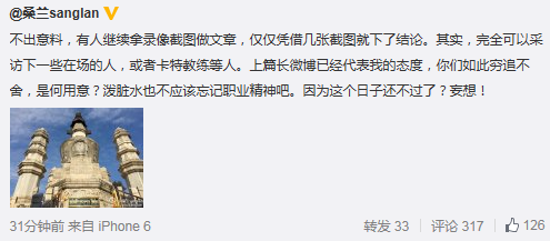 原标题: 桑兰微博反问:穷追不舍何用意?想泼脏水是妄想