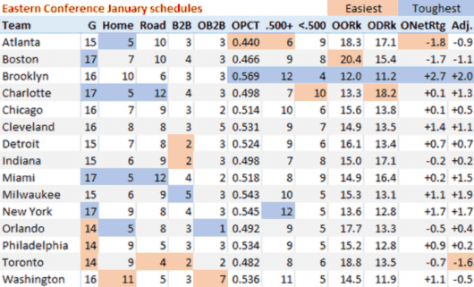 以下是舒曼整理的东部球队一月赛程值得注意的地方:
