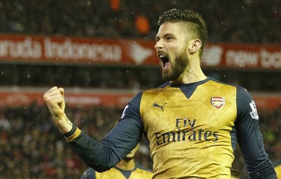 吉鲁2球悍将压哨扳平 阿森纳客场3-3利物浦