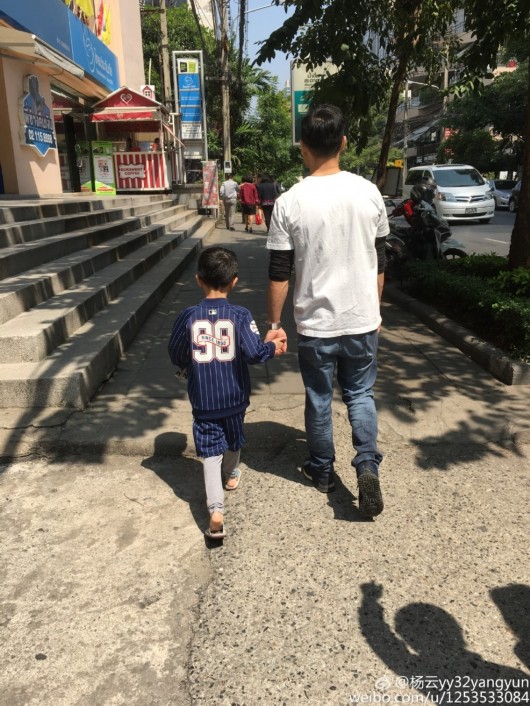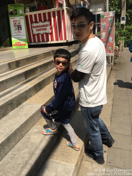 杨威携妻带子泰国度假 杨阳洋卖萌坐飞毯