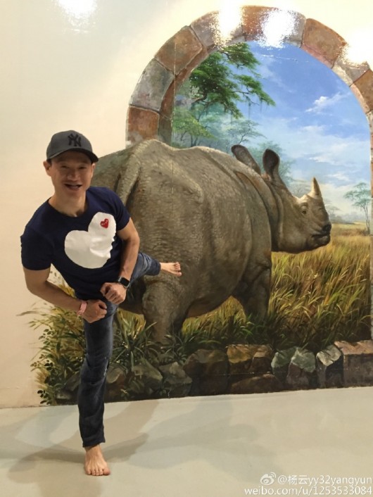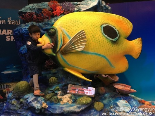 杨威一家春节前往泰国度假,拍摄各种搞笑卖萌照片。