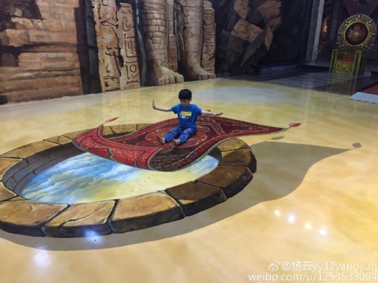原标题: 杨威携妻带子泰国度假 杨阳洋卖萌坐飞毯