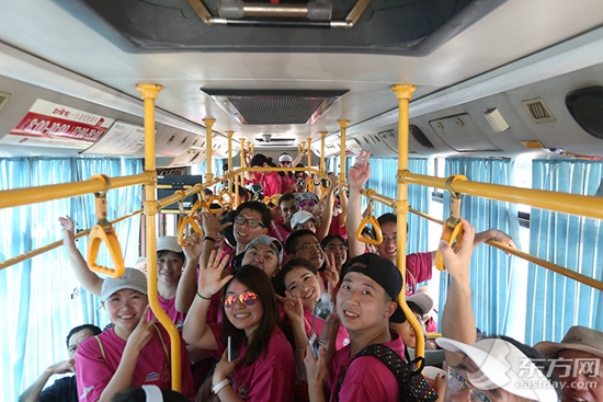 图片说明:这辆公交车里,没穿定向赛比赛服的反倒成了另类