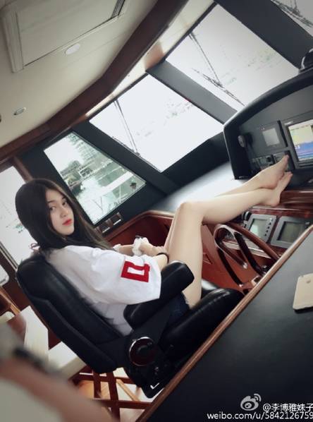 近日,95后冰壶美女李博雅在微博中晒出多张美照,照片中她身处游艇里,短袖T恤搭配热裤,大秀白皙长腿。网友纷纷点赞,更有人表示“腿太美”、“这腿无敌了”、“冰壶女神”。