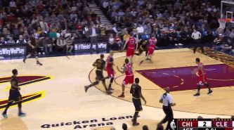 面对没有了吉米-巴特勒的公牛,詹姆斯更是不可阻挡。一上来,里突外投连得8分,看着公牛很多时候只能用老将邓利维防守詹姆斯,让人都有种淡淡的心酸。面对詹姆斯的冲撞,邓利维几次直接弹开。第一节进行到9分03秒,詹姆斯沿着左侧45度角突破,坦克一般的身躯撞向邓利维,公牛老将摔倒在地,还直接飞出了界外。摔倒在地的邓利维举手抗议,认为詹姆斯犯规了,但这一球詹姆斯确实是合理冲撞,裁判明察秋毫。