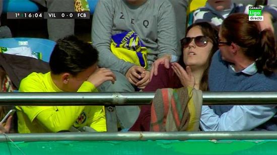 身材小巧的梅西,他的脚头有多硬?昨天一位比利亚雷亚尔女球迷不幸领教了一番,在巴萨客场与黄潜的比赛中,梅西于第15分钟在30码外一脚远射高出横梁,却不偏不倚地击中了门后看台上的一位女球迷。
