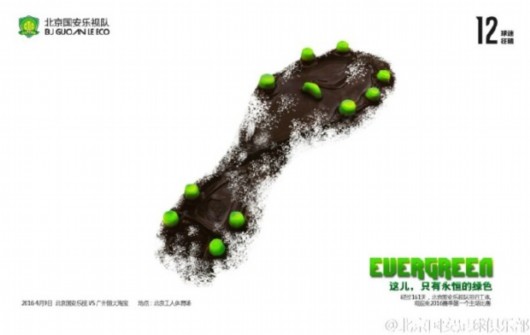 4月8日,北京国安官方发布了本轮中超主场对阵广州恒大的宣传海报,主题是Evergreen(永恒的绿色)。