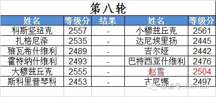 前世界冠军科斯坚纽克、法国的斯科里普琴科和乌克兰的大穆兹丘克同积4分,并列积分榜第二集团。