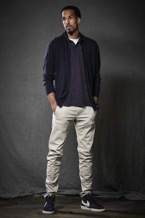 夹克:Hugo Boss;衬衫:Shades of Grey;牛仔裤:Paige;鞋:德尔-托罗;表:荣汉斯大师。