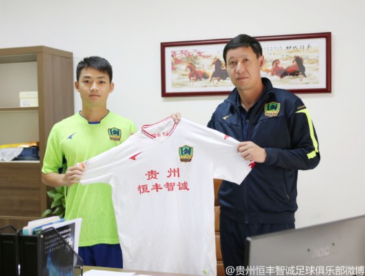 中甲球队贵州恒丰智诚宣布与恒大小将梁学铭、刘浩两名队员完成签约。