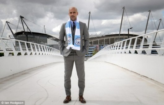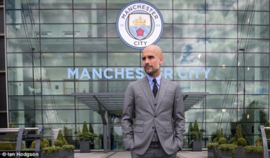 瓜迪奥拉帅气亮相伊蒂哈德球场