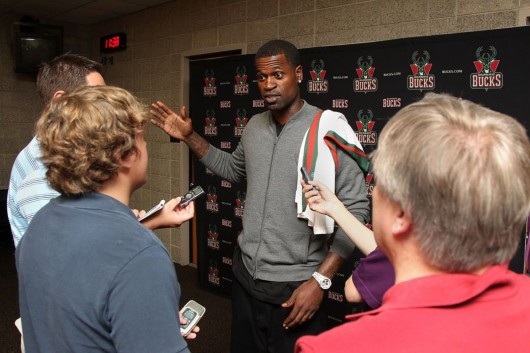 密尔沃基雄鹿今日为斯蒂芬-杰克逊召开了新闻发布会,杰克逊表示自己很高兴加盟雄鹿,尽管是初来乍到,但是他已经自封球队的领袖,要当布兰登-詹宁斯的老师。