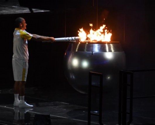 开幕式上主火炬被点燃。