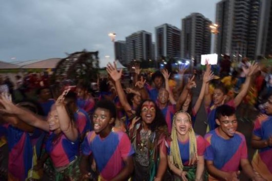 舞蹈演员表演巴西特色舞蹈欢送参加升旗仪式的各代表团