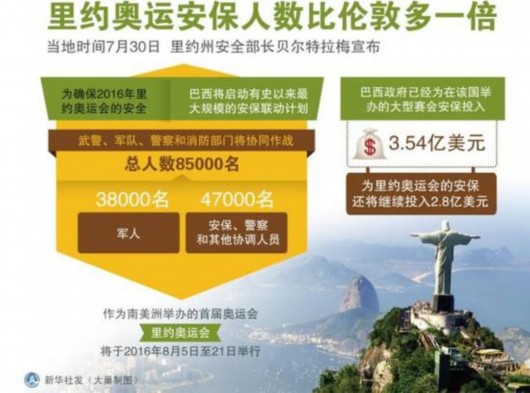 里约奥组委发言人安德达拉:“由于政治和经济双重危机,目前治安是不太好,但已经投入8.5万人加强安保工作。”