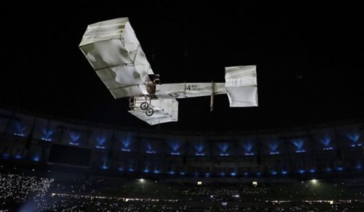 在今晨开幕式“都市”这一篇章中,饰演巴西人民心中的飞机发明者杜蒙的演员,驾驶着最原始的飞机出现在马拉卡纳体育场上空,场面十分震撼。当夜幕降临,“杜蒙”驾驶着飞机缓缓离开了体育场,镜头随即切换到空中,只见飞机掠过里约的著名景点,尽展美丽夜景,仿佛映照着这位伟大的发明家光辉而又令人惋惜的一生。网友们看到这一幕,立刻热议跟进,多数人认为巴西人此举有些颠覆的味道。