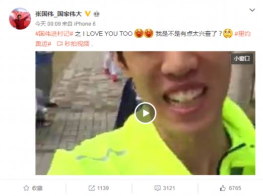 张国伟在微博中晒出这样一段视频,应该是他刚进奥运村,随即拿出手机各种视频自拍。“那就是中国队的大门,写着很多‘CHINA’字样,中国队是直接包楼的……”。张国伟明显感叹中国军团的豪气。