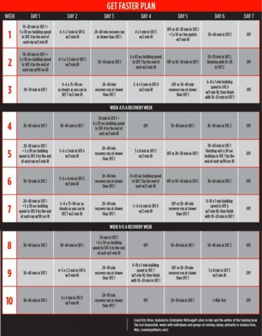 《为期10周的提升速度训练计划》今天将为大家介绍最后一部分“训练日程表(二)”。