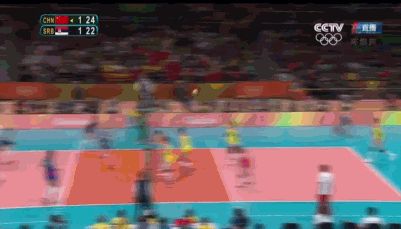 GIF-朱婷局点发球得分打崩溃塞队 郎平握拳叫好