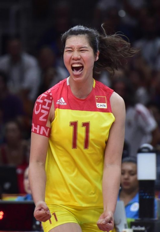 12号惠若琪,主攻,中国队队长。这是8月14日,惠若琪在比赛中呐喊加油。新华社记者岳月伟摄