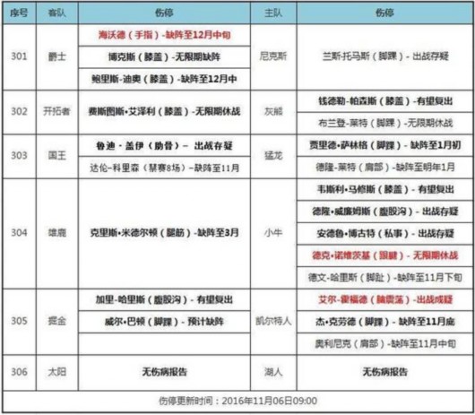 [天天盈球]06日NBA伤停:诺天王跟腱受伤大修