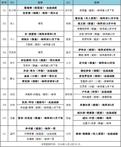 11月13日周日的11场NBA比赛里面,马刺、奇才、快船、尼克斯和猛龙等10支球队背靠背,伤停变化请密切关注今天周六的比赛。目前的伤病情况来看,热火、凯尔特人、和掘金的伤病需要格外关注。马刺尚未传出明确伤停消息,但是帕克和丹尼-格林本季都有伤病麻烦,球队背靠背也需谨慎观望。